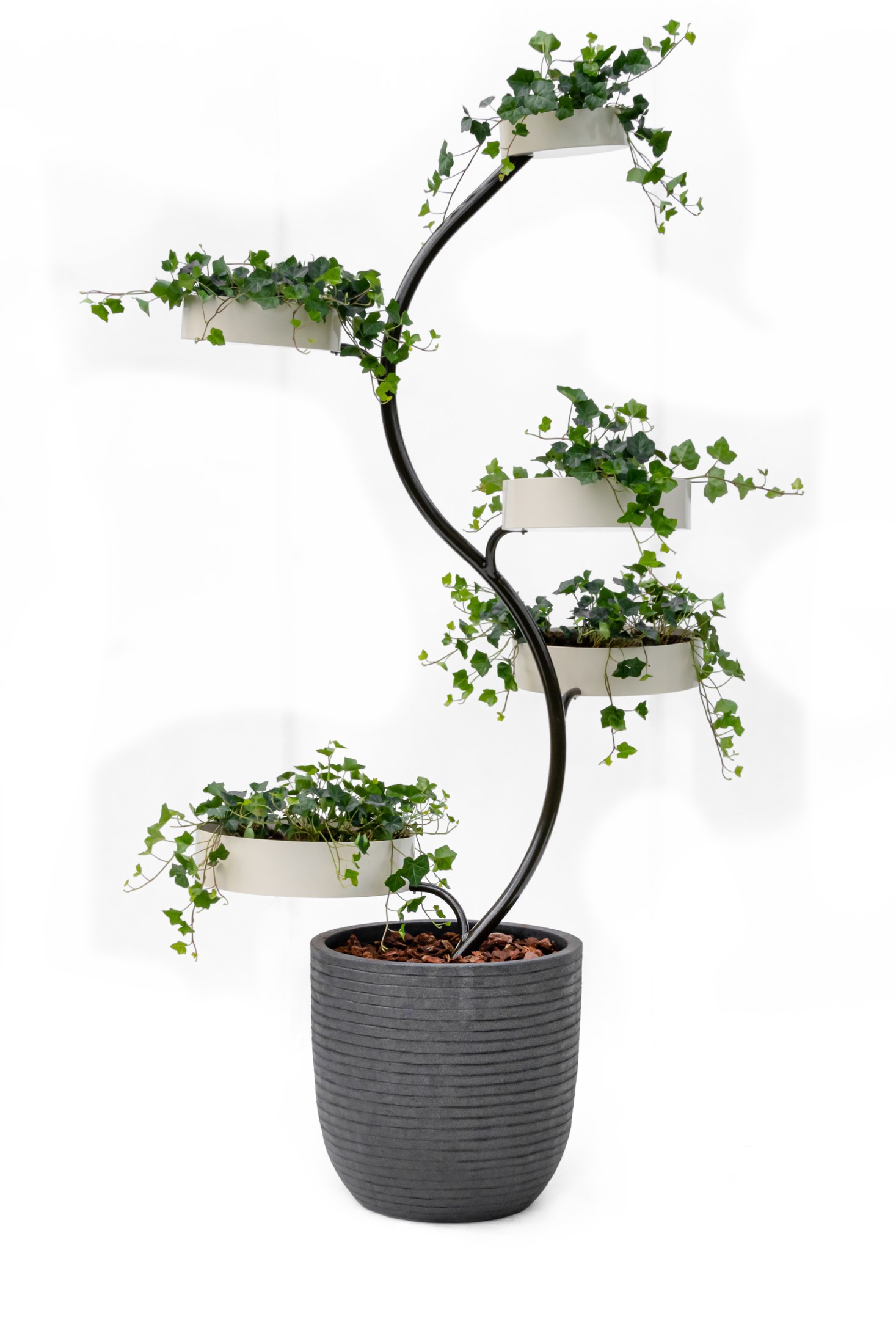 Ponsai is een groene eyecatcher voor binnen en buiten. Dit stijlvolle groenobject van bijna 2 meter hoog bestaat uit een stevig framework in de vorm van een boom, een verstevigde pot en ronde bakken die u geheel naar eigen wens (telkens opnieuw) kunt voorzien van de planten die u mooi vindt. Een mooie, groene en bijzondere finishing touch voor uw tuin, terras, kantoor of woonvertrek.